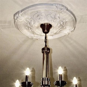 In the past, large ornate ceiling roses were popular but today’s trends prefer smaller, sleeker and more contemporary designs. The rose is used to encase the electric cable. These cables typically run between plasterboards on the ceiling that are attached to joists and covered by timber. Older style roses were mostly made from plaster but nowadays polymer-based products are more popular. Ceiling roses made from plaster were large, heavy and ornately decorated and can still be seen in many period homes and grand estate buildings.
